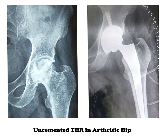 Hip replacement using these parts is referred to as a “cemented” procedure. Uncemented parts rely on a process called biologic fixation, which holds them in place.
