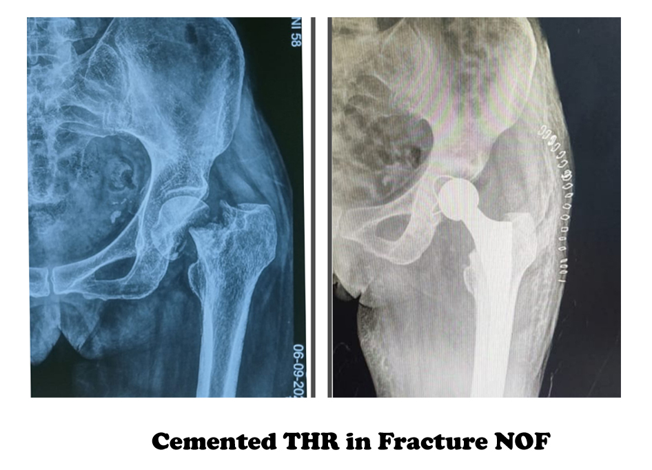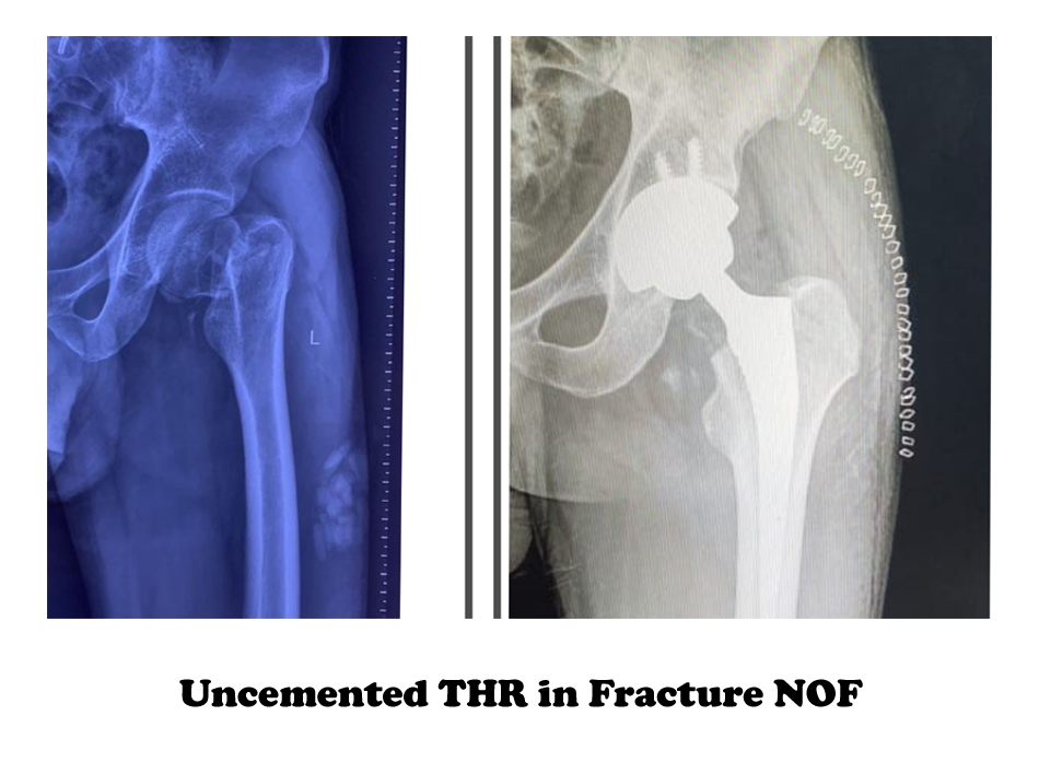 Cemented replacements are more frequently used for older, less active people and people with weak bones, such as those who have osteoporosis, while uncemented replacements are more frequently used for younger, more active people.