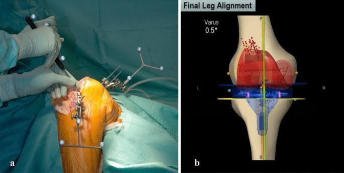 The navigation system used for total knee arthroplasty is therefore a precision instrument for carrying out the operation, and it also has the potential for aiding the surgeon making intraoperative decisions, through the resource of simulating actions before implementing them. The Navigation System for total hip and total knee replacement surgeries offers a technology that can assist in more accurate implant alignment and proper ligament balancing, which are essential for the artificial hip joint and knee joint stability, durability and sufficient range of motion.