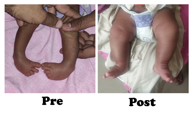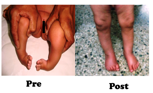 It is a full proof method for the treatment of congenital club foot deformity with casting and stitch less surgery. It requires 4-6 casting before the final stitch less surgery. Surgery requires the cutting of the tendoachilles. It gives near 100 percent result and your baby’s feet can become near normal to such an extent that no one can make out that it was once deformed.